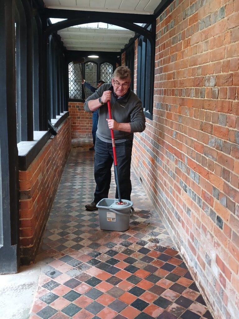 This week, members of The Lambourn Shed joined forces with residents and volunteers from The Lambourn Almshouses for a cheerful Autumn Clean. Armed with brushes, rakes, and plenty of enthusiasm, the team set about sweeping paths, wiping down woodwork, washing floors, and clearing away the dust and leaves that had gathered over the summer months.